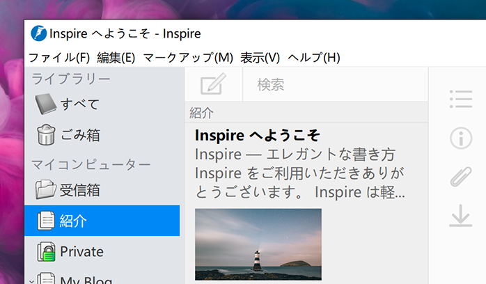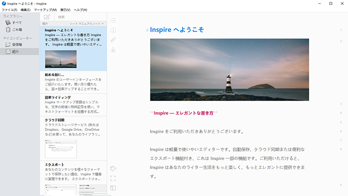 Inspire は簡単な多機能なライティング環境を提供します。